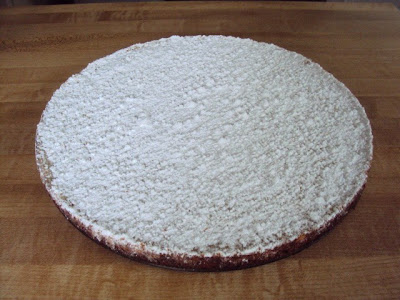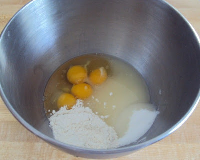 While the crust is baking, whisk together the eggs, sugar, flour and lemon juice until light and frothy.