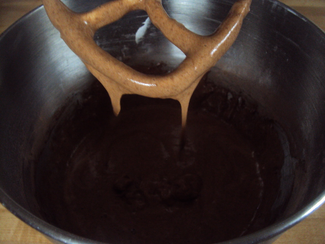 - Mix in flour, cocoa and salt. Stir until combined.