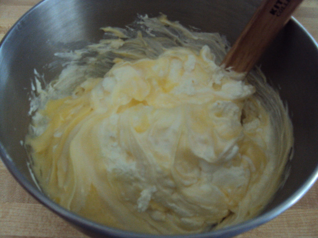 Cream together the cream cheese and sweetened condensed milk.