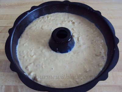Grease a bundt pan and sprinkle in a little sugar to evenly coat it.