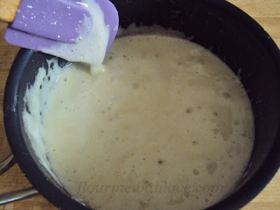 Allow to cool for a little bit. While it’s cooling, place the butter, sugar, buttermilk and maple syrup in a pot and place over medium heat.