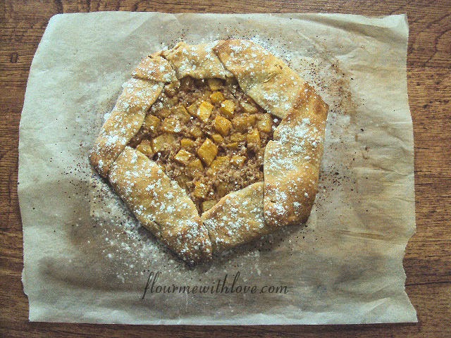 My dad gave me a squash…not just any squash; a squash that weighed 13.6 pounds! He grows them every year although he’s not quite sure what kind they are. They’re somewhat like a zucchini, but they really don’t have any seeds, they’re light orange inside and green on the outside. I was eager to try it so I got right to work! The first recipe I made I just chopped some up, added some sausage and cheese then baked it in the oven…nothing special, but that’s what my daughter wanted. I wanted more of a stuffed style so I cut a chuck off, filled it with chicken, bacon and gouda…scrumptious! Then I made two desserts and froze the rest. This Squash Crostata is a simple recipe, it tastes delicious and it’s a great way to sneak some veggies into your diet. Honestly, I never told my family it was squash in the desserts. They tried it, thought it was fruit and I left it at that…if you don’t tell, I won’t either!