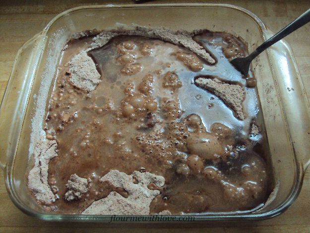 In the mood for cake, but realize you’re out of eggs or butter? That happened to me the other day and then I remembered a recipe from my eighth grade home-ec class called Wacky Cake (or depression cake). My daughter wanted to help bake this so we tried to make it as simple as possible; we changed a few ingredients and mixed it in the pan. Believe me, you can’t get any easier then this! It uses ingredients found in your pantry and bakes up in half an hour. I’m really surprised that I had forgotten about this for so many years, but no need to worry, it’ll be on our dessert menu quite often and I hope it’s on yours too!