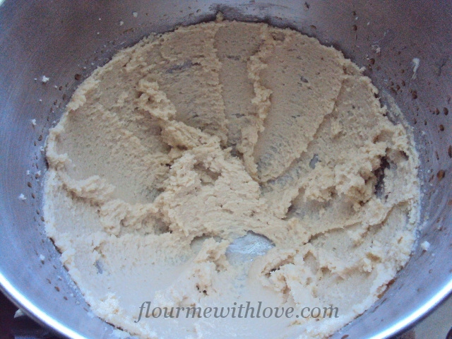 - Cream together the butter, sugar and brown sugar.