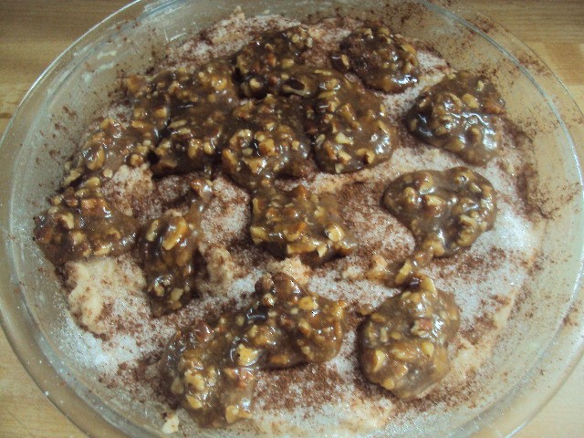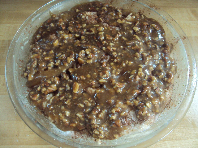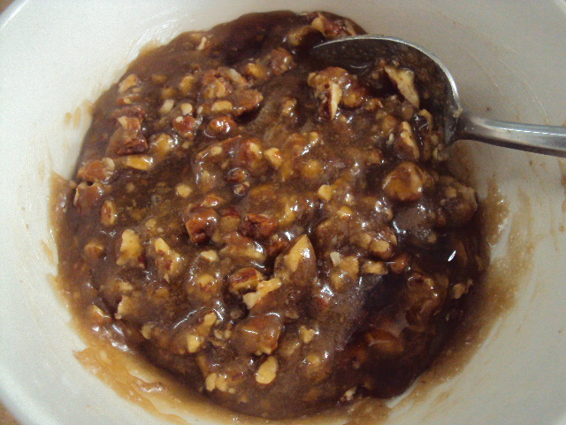 In another bowl mix together the corn syrup, melted butter, brown sugar, and pecans together.