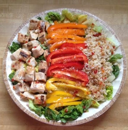 One of our favorite meals are one bowl salads. These salads are a one bowl meal that’s packed full of protein, and it’s bursting with flavor! We chop up Tyson® Grilled & Ready® chicken strips, add in some brown rice, colored bell peppers and pile it on top of crispy romaine hearts and then drizzle it with Wishbone® Italian dressing. Have you ever had brown rice on a salad? Let me tell you, it is delicious, and when it’s mixed with the Wishbone® Italian dressing it takes it from good to great!