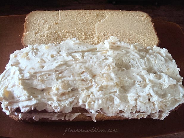 Take some of the cream mixture and evenly spread on top of the first layer.