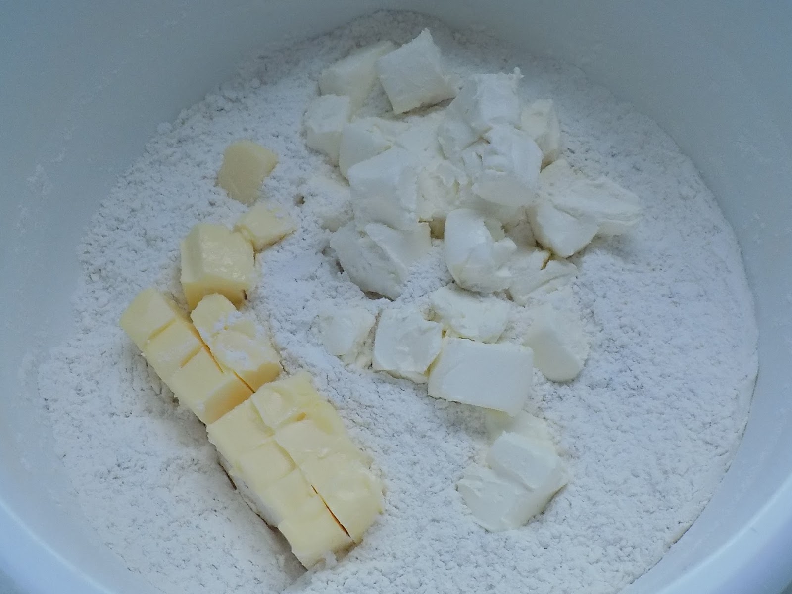 Add the cubed cream cheese and butter.