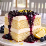 A Soft, Buttery Lemon Cake with Creamy Filling and Bright Blueberry Sauce